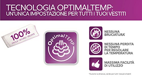 L’impugnatura è ergonomica e pratica, si adatta perfettamente alla mano. Il peso, come abbiamo detto, è contenuto e consente di stirare per più di tre ore di fila (anche grazie al serbatoio molto capiente). Utilizzarlo è molto semplice e l’impostazione OptimalTemp (quella che consente di stirare con un’unica impostazione) aiuta notevolmente anche i principianti. I risultati sono professionali con il minimo della fatica e dello sforzo.